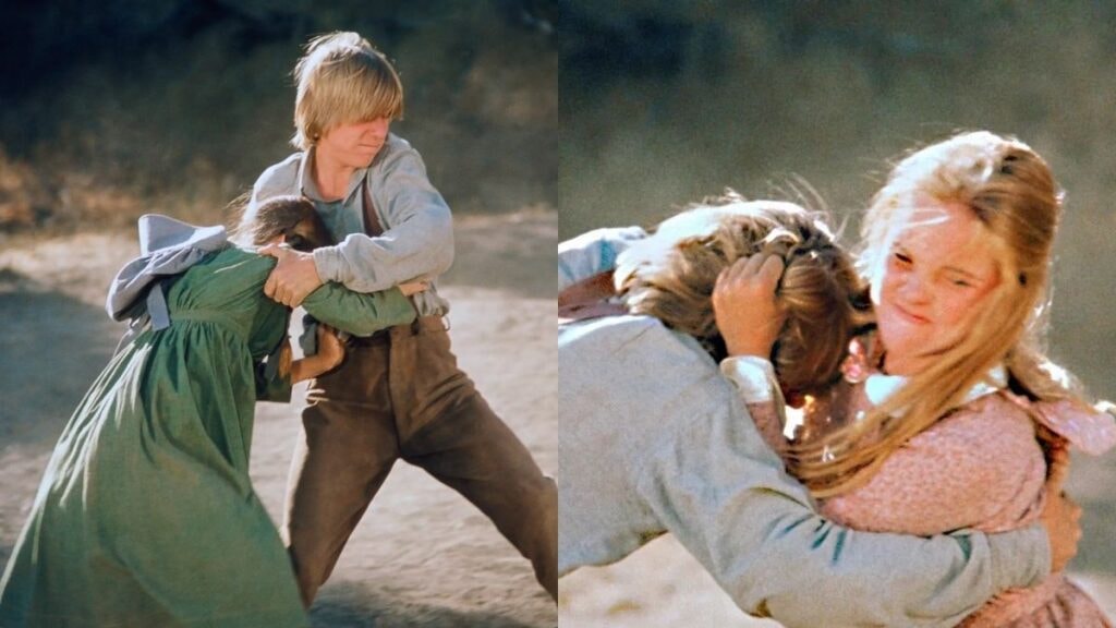 Avec le temps, Bully Boys s’est imposé comme l’un des épisodes les plus perturbants de La Petite Maison dans la Prairie. Officiellement conçu comme un récit sur la lâcheté et les abus de pouvoir, il est aujourd’hui pointé du doigt pour la violence envers les femmes qu’il met en scène. Agressions, intimidation, humiliation… rien n’est édulcoré, et beaucoup de fans estiment qu’un tel contenu ne passerait jamais sans avertissement en 2025. Dès l’arrivée des frères Galender à Walnut Grove, l’atmosphère se charge d’une tension inconfortable. Ils s’en prennent systématiquement aux femmes. Même la cour de récréation devient un lieu de danger pur, avec ce moment où Bubba frappe Mary en plein visage, gratuitement.