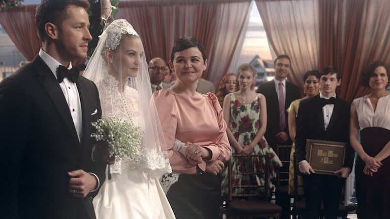 C’est à la fin de la saison 6, dans un épisode musical que se concrétise cette histoire d’amour. Cependant ce mariage est menacé par l’attaque de la Fée Noire, qui ne souhaite qu’une chose : le coeur d’Emma. Elle la fait chanter en gelant toute sa famille avec l’aide de Rumplestilskin. Emma reprend confiance en ses pouvoirs grâce à Henry, et sauve une nouvelle fois sa famille. Ils se marient enfin et empêchent, par leur amour, une nouvelle malédiction de s’abattre sur Storybrooke. Comme c’est meugnon !