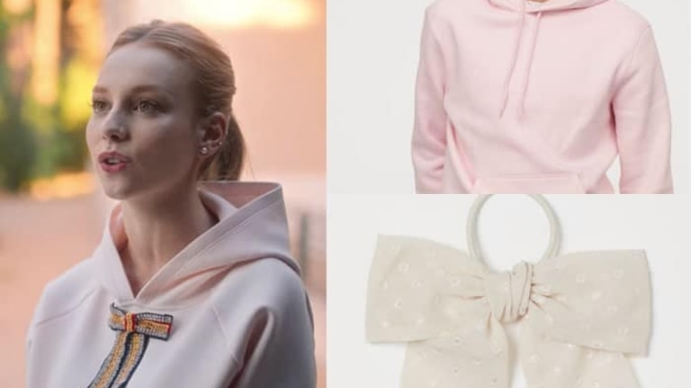 À défaut de pouvoir vous proposer la pièce originale de chez Maje, la rédac de Serieously vous invite à confectionner votre propre hoodie rose pour ressembler à la Marquise. Pour cela, il faut acheter le sweat à capuche + l’élastique à cheveux avec noeud, couper l’élastique et faire un point de couture pour le fixer sur le devant du sweat. En cas de doute, demandez à votre grand-mère.
