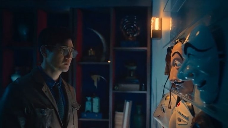 On y voit Yoo Ji-tae, qui incarne le Profesor, être posté devant un mur où se trouvent plusieurs masques. Parmi eux, les fans de La Casa de Papel auront reconnu le célèbre masque de Dali vers lequel le Profesor tend la main.
