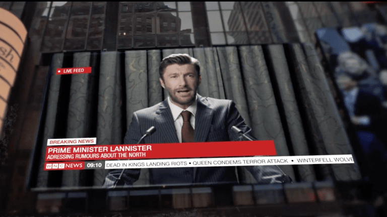 Fini les chevaux, les chasseurs et autres tuniques d’antan, dans ce spoof trailer de Westeros The Series, ils sont savamment remplacés par des buildings, des conférences de presse ultra médiatisées et des costumes trois-pièces. Pour les plus puristes d’entre nous, soyez rassurés, les codes la série sont tout de même parfaitement respectés : le sexe, la violence, les complots, les loups et même les dragons sont bien présents et minutieusement intégrés à une ère où la rébellion semble aussi en marche. Même le discours du premier ministre Lannister fait écho à l’une des phrases les plus mythiques de la saison 1 de la série, « Trust me, fear cut deeper than swords » (« Crois-moi, la peur coupe plus profondément que les épées »).