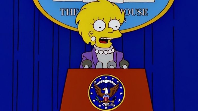 En 2000, les créateurs de la série avait proposé un épisode intitulé Les Simpson dans 30 ans (Bart to the future en VO), qui suivait l’entrée à la Maison Blanche de Lisa, première femme élue à la tête du pays. Cette dernière était alors habillée d’un tailleur violet et portait des bijoux en perles, soit le même ensemble arboré par Kamala Harris, 20 ans plus tard. Par ailleurs, le personnage du dessin-animé prenait ses fonctions de présidente après la fin du mandat désastreux de Donald Trump. Une double similitude, qui a donc frappé les fans du programme satirique.