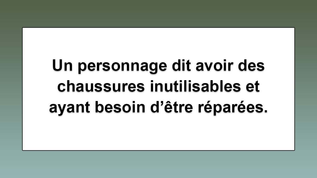 Il ne fallait pas tomber dans le piège ! C’est bien Pithivier dans le film Mais où est donc passée la 7ème compagnie ? qui se retrouve avec des chaussures complètement inutilisables et ayant besoin d’une réparation d’urgence.