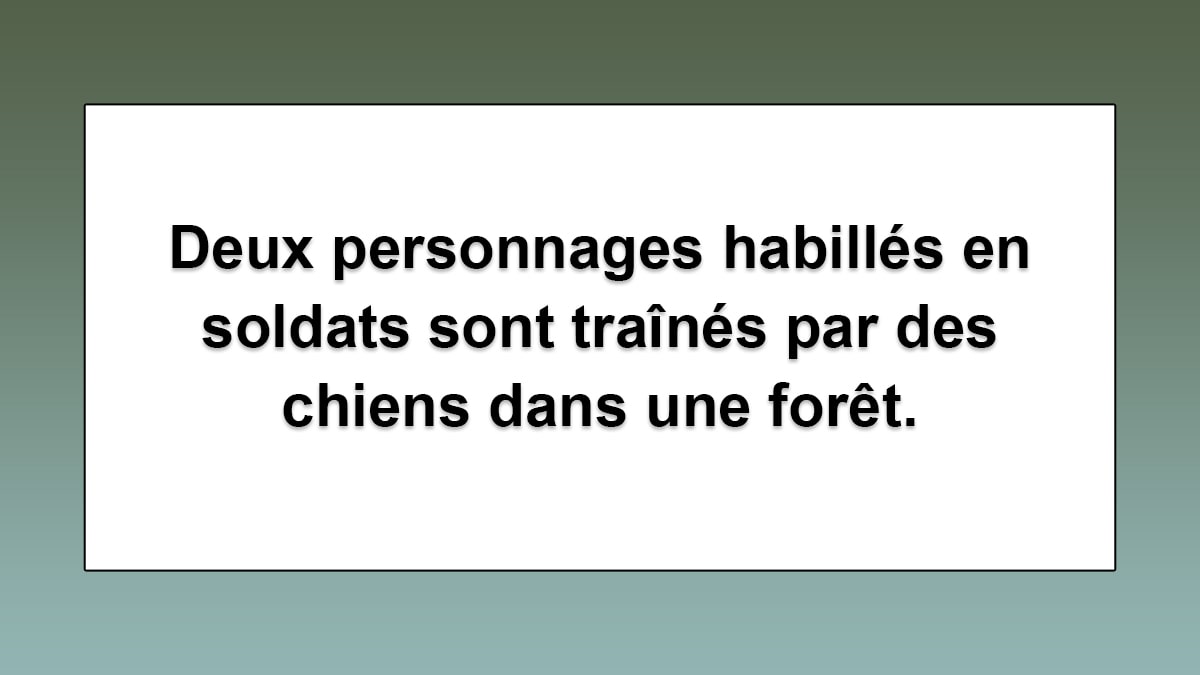 Ce sont Stanislas et Augustin, en soldats allemands, qui se font tirer par deux Bergers allemands qui leur sont confiés.