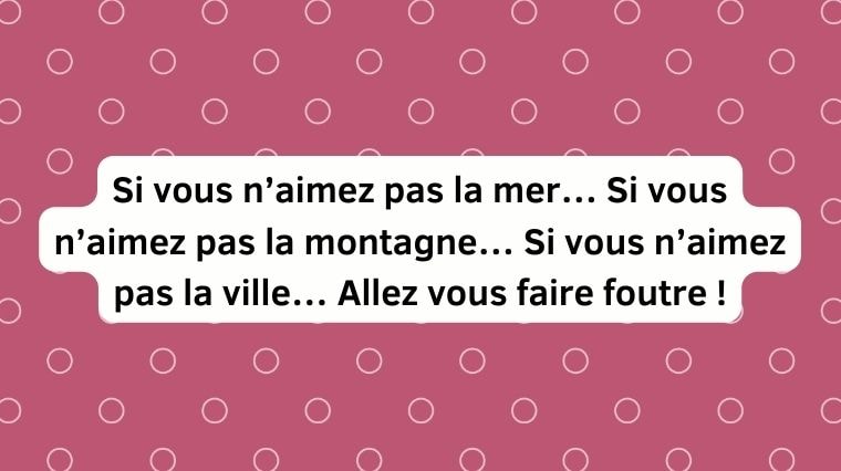 Wow, on peut dire que tu es un(e) véritable cinéphile ! C’est simple, tu ne manques jamais une occasion de sortir ces répliques. Bravo à toi !
